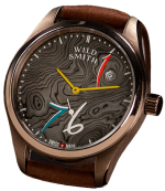 A Swiss-made, ultra-slim digital movement, powered by battery, with seconds at six o’clock and the date at two.